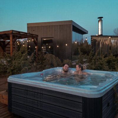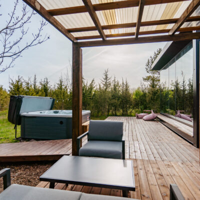 Juniper Minivilla hooned on ehitatud aastaringseks kasutamiseks nagu ka terrassil asuv saun ja mullivann. Siin on mõnus ka krõbedaid talveõhtuid nautida kuni -30c pakasega.
