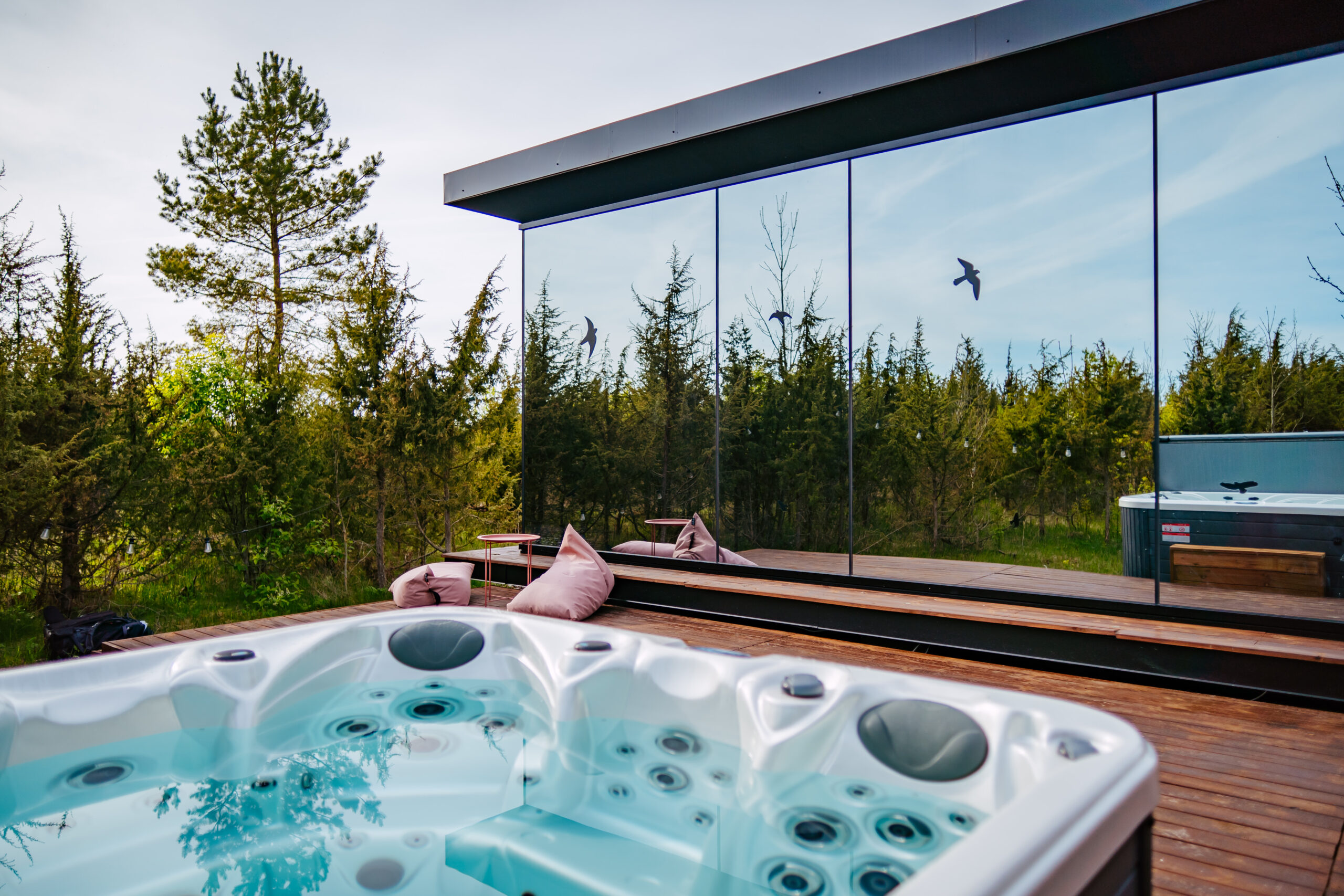 Juniper Minivilla hooned on ehitatud aastaringseks kasutamiseks nagu ka terrassil asuv saun ja mullivann. Siin on mõnus ka krõbedaid talveõhtuid nautida kuni -30c pakasega.