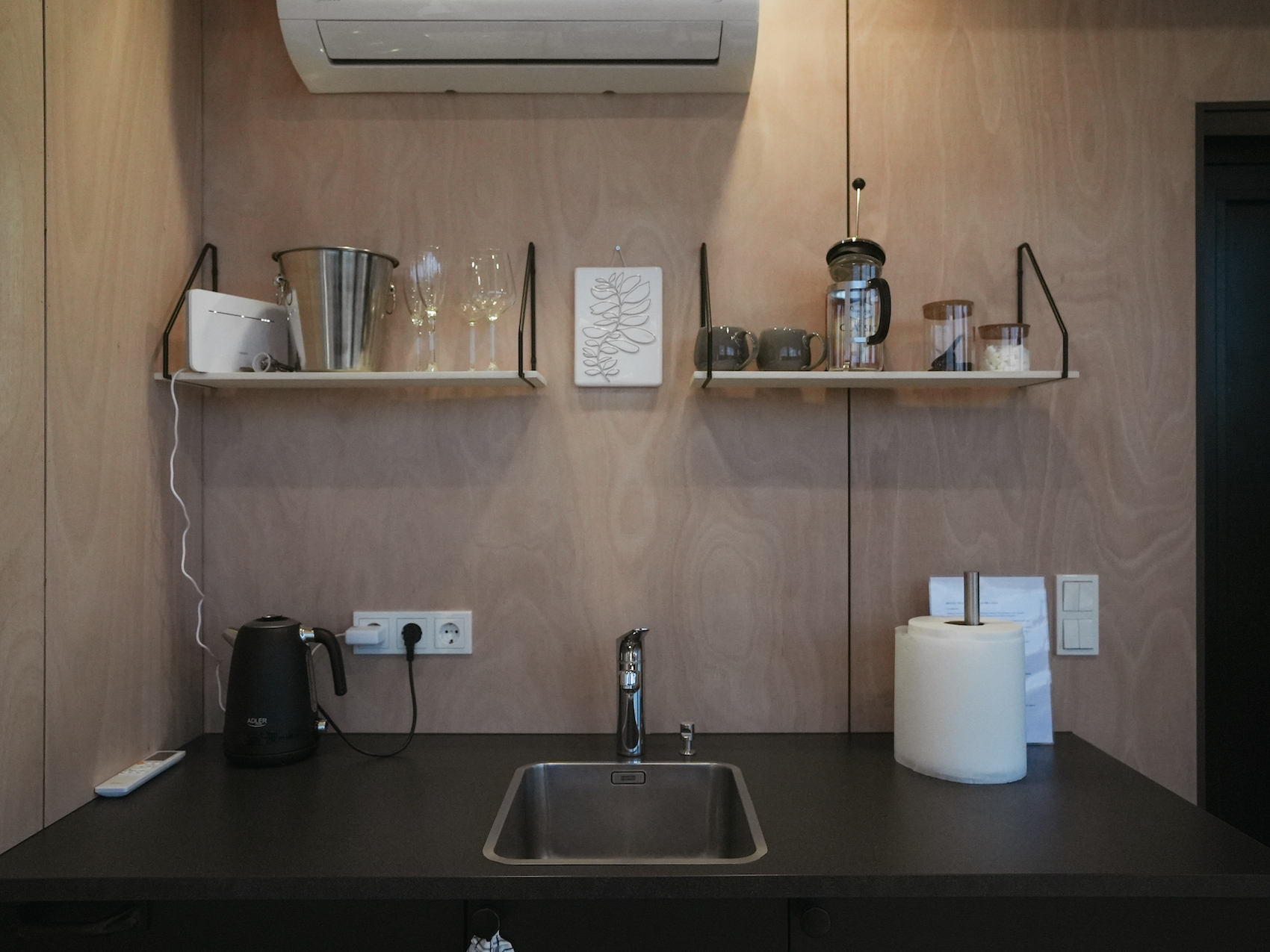 Sind ootavad viimse detailini läbimõeldud ja mugavalt sisustatud peegelmaja kahele, privaatne terrass ja leilisaun koos mullivanniga ning katusealune grillimiseks ja sumeda suveõhtu nautimiseks. Jahedamad sügis-talvised õhtud muudab hubaseks õdusalt praksuv elektrikamin, kööginurk romantilise õhtusöögi valmistamiseks ning lai voodi, kus mõnusalt teineteise embuses unne vajuda.